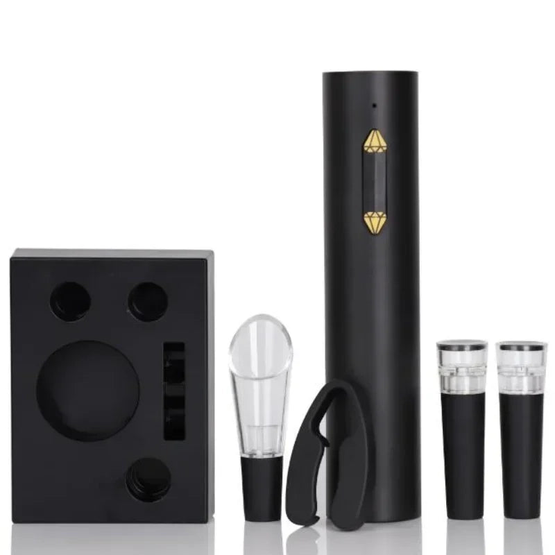 Absolutely. This curated collection includes not only the electric opener but also a foil cutter, a pourer, and two stoppers, ensuring every facet of your wine enjoyment is refined and complete.